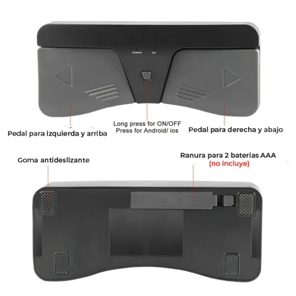Pedal para pasar páginas o deslizarse arriba y abajo a través de bluetooth en su tableta o celular