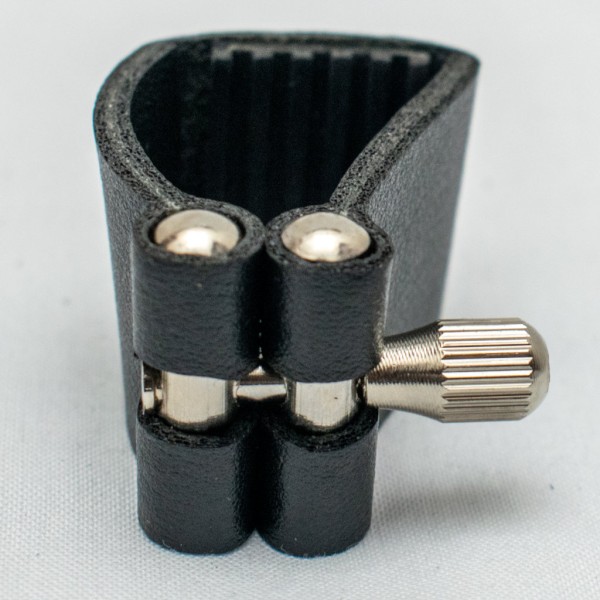 Abrazadera económica de cuero con tornillo silver para saxo tenor.